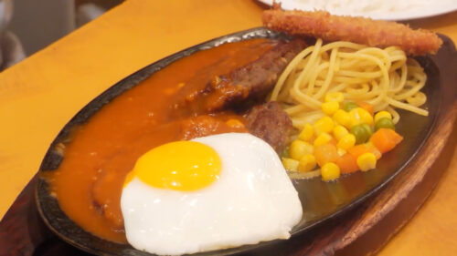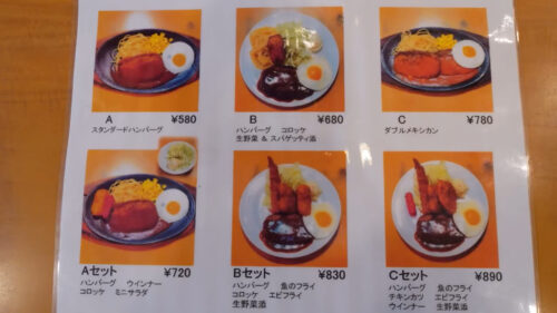 B「ハンバーグ、コロッケ、スパゲティー」 680円